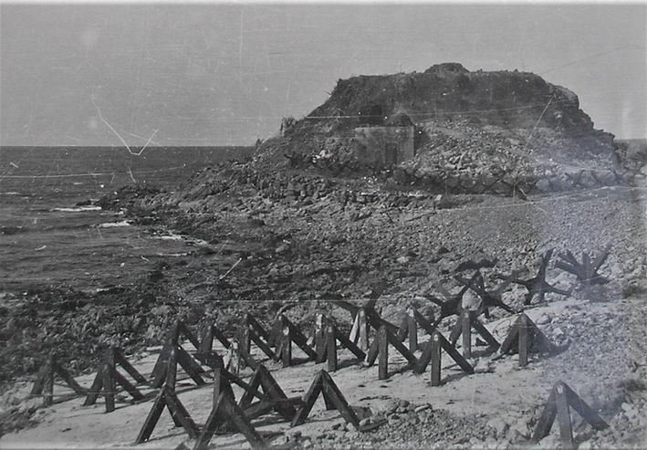 Jaegerstand SK Type casemate incorporating a 6-loopholed turret. Type 670 casemate connected to a tunnel system and a SK searchlight shelter. 2 X Siegfried shelters for eavy machine gun/mortar crews. Tobruk for APX-R turret. Also a small emplacement for the twin MG34.