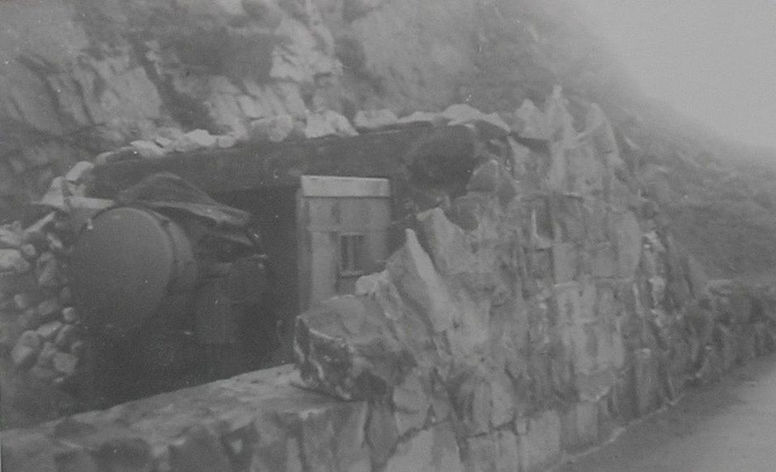 Grève de Lecq Bay was a German strongpoint during the Occupation. The German Forces deployed a lot of armaments and bunkers in the area. Today you can still find a Type 670 and a Type 680 Casemate, which housed a 7.5cm Pak 40 Gun and a 10.5cm French Gun. The Harbour has scars of where the Germans installed a tank turret. You can also find traces of rails used to move the searchlight. Near the cafe remains of a latrine and sink block can be found. In the middle of the bay a Jersey Round Tower dominates the view, this Napoleonic era tower was also modified by the Germans to include a secure bunker at the base, and a roof-mounted machine gun.