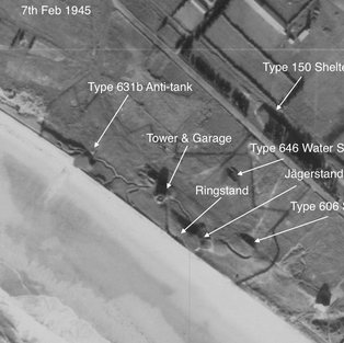 Above (Top) is a The anti-tank bunker (that was cut to make way to the slipway post-war) at Resistance Nest Lewis Tower on the west coast of Jersey. More photos and maps on the website.